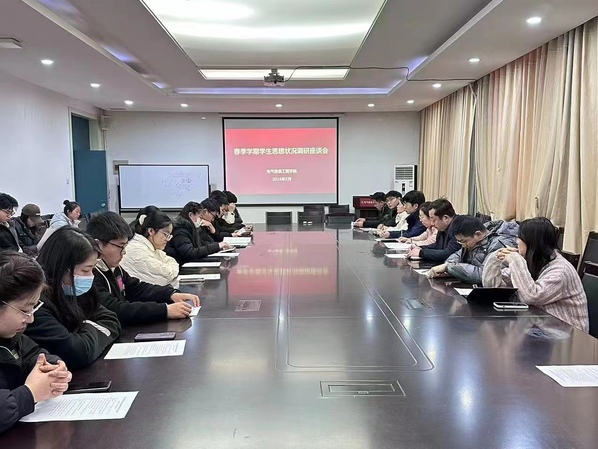 为全面掌握学生思想状况,更好开展学生思想政治教育和价值引领,2月29日下午电气信息工程学院召开学生思想动态调研座谈会。会议由学院党委副书记刘振卫主持,全体辅导员、各年级学生代表参加了座谈会。