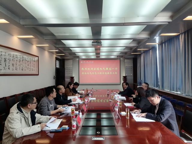 3月15日下午,金冠电气股份有限公司总经理樊崇等一行4人到电气信息工程学院访问交流。副校长王延峰、电气信息工程学院班子成员及部分骨干教师参加交流会。会议由院长和萍主持。