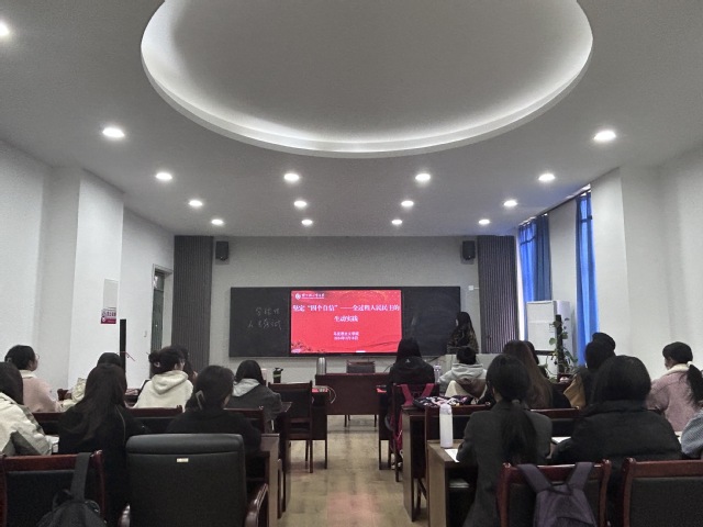 为深入学习贯彻习近平新时代中国特色社会主义思想和党的二十大精神,认真学习贯彻习近平总书记在同团中央新一届领导班子集体谈话时的重要讲话精神,马克思主义学院于3月18日在511教室开展“坚定‘四个自信'——全过程人民民主的生动实践”主题团日活动。