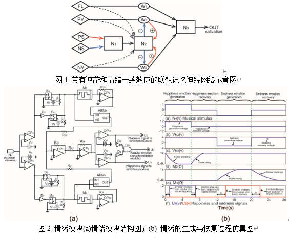 传统基于忆阻的联想记忆神经网络电路大多只考虑单一模式的遮蔽或情绪,而忽略了遮蔽与情绪之间的关联。该论文设计了一种基于忆阻的带有遮蔽和情绪一致效应的联想记忆神经网络电路。电路主要由情绪模块、记忆模块、抑制模块和反馈模块组成。情绪模块实现了不同情绪的生成与恢复功能。记忆模块和抑制模块实现了不同情绪下的遮蔽和从遮蔽中恢复的功能。反馈模块实现了长期遮蔽导致的阻塞功能。结果表明,该电路可以实现上述条件反射功能,且相对于以往工作,该电路可以实现实际场景中更加复杂的联想记忆过程,为构建大规模类脑神经网络提供参考。