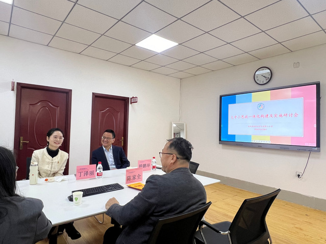 宣讲活动结束后,陈校长、顾主任、丁教授等围绕大中小思政一体化构建及实施开展研讨。希望两校能够继续深化合作、加强交流,致力于提升教学实效,推进教学方式的创新,切实做好各项工作,确保大中小学思政课一体化建设能够取得更为显著和卓越的成效。
