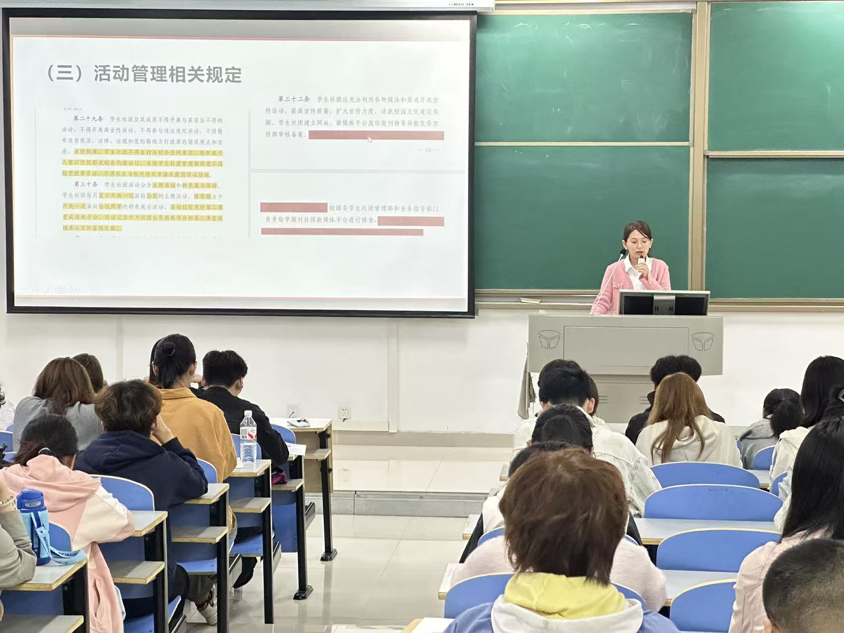 本次培训以“系统化制度解读、精准化技能培训、开放式经验交流”为核心,覆盖重点制度文件解读、工作技能培训、社团风采展示三大板块,有效提升了社团骨干的管理服务意识,为学生社团发展注入新活力。会上,校团委老师首先对拟上任的新一届学生骨干表示欢迎,希望同学们坚定信念,做引领青年的“先行者”;精进业务,做社团发展的“开拓者”;锤炼作风,做服务同学的“实干者”;规范管理,做健康校园的“守护者”。接着,校团委学生社团管理部负责老师详细解读了学生社团建设管理的相关制度,明确了社团注册年审、活动审批、活动安全等方面的工作要求,还对学生社团招新、“新生杯”系列活动开展等近期重点工作进行了安排部署。随后,学生社团管理中心主要负责同学围绕实用技能展开培训,依次讲解了活动策划、经费管理、第二课堂管理平台使用以及宣传报道等内容,为社团骨干提供了具体的操作指导。最后,花艺协会、环境与保护协会、青年志愿者协会、大学生吟诵社作为优秀社团代表,围绕社团建设、特色活动等方面进行了经验分享。