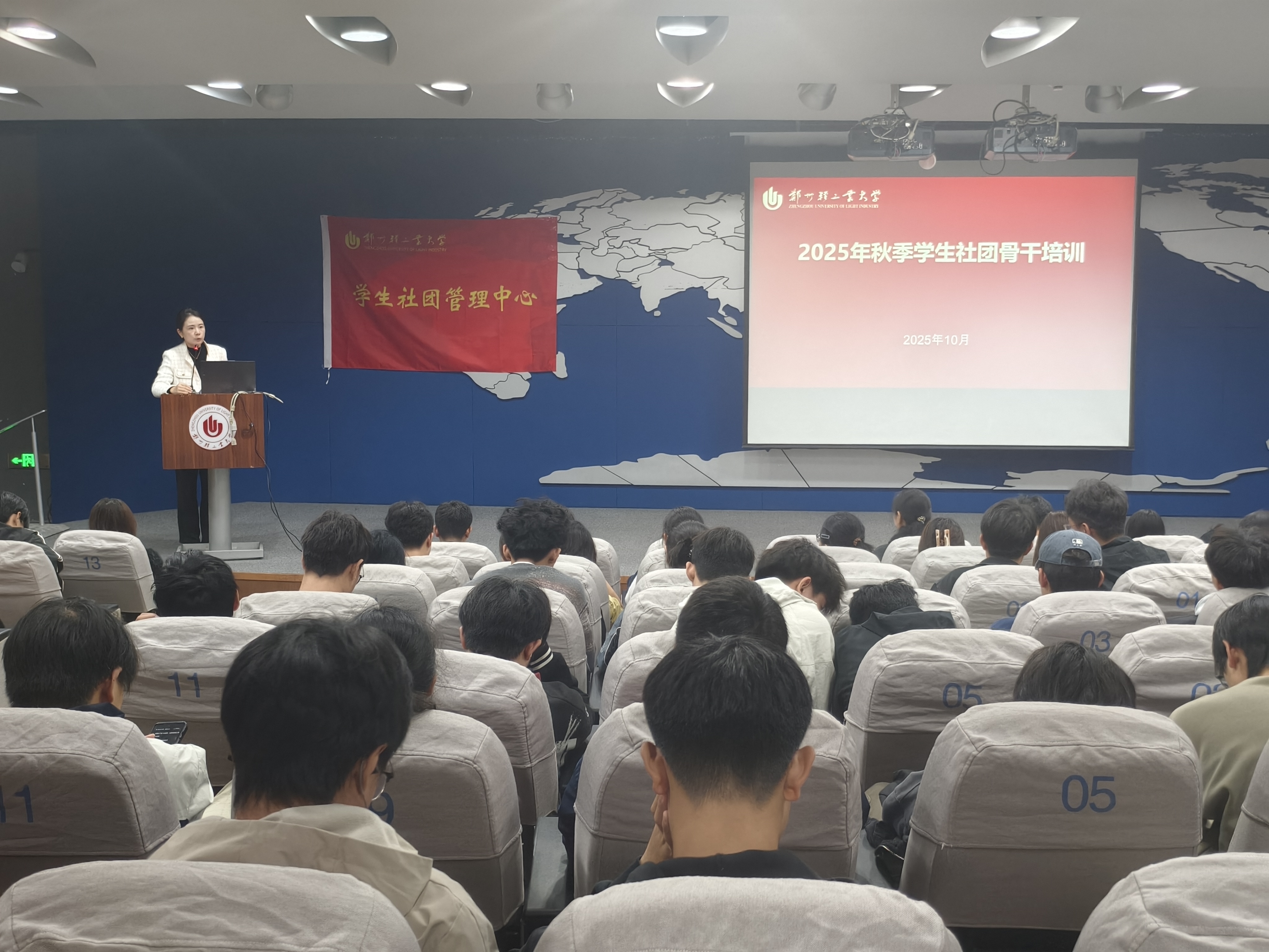 为推动学生社团健康有序发展,增强新一届学生社团骨干政治素养和业务水平,10月16日、17日,学校分别在科学校区工程楼101室和东风校区图书馆一楼学术报告厅举办2025年秋季学生社团骨干培训。校团委相关负责老师、学生社团管理中心学生骨干以及各社团学生骨干500余人参与了本次培训。