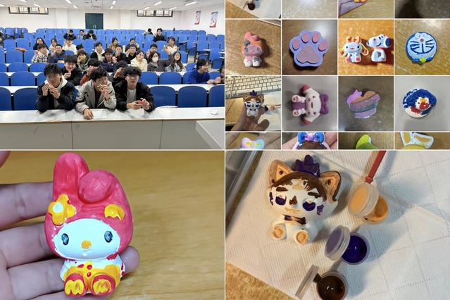 10月22日下午,移动软件2024级4班在三教楼109开展“生活调色盘:绘制你的多巴胺人生”心理活动。活动分为石膏娃娃制作、主题心理沙龙、线上生活分享三大板块。石膏娃娃制作区,同学们围坐创作,借色彩抒发心境,彼此交流技巧,陌生同学逐渐熟络起来。心理沙龙上,主持人刘孜晗播放“困惑征集”语音,大家分享焦虑,交流解压办法,同学晒日常获得了大量互动。活动尾声,同学围圈分享感受,纷纷表示找到了情绪出口。