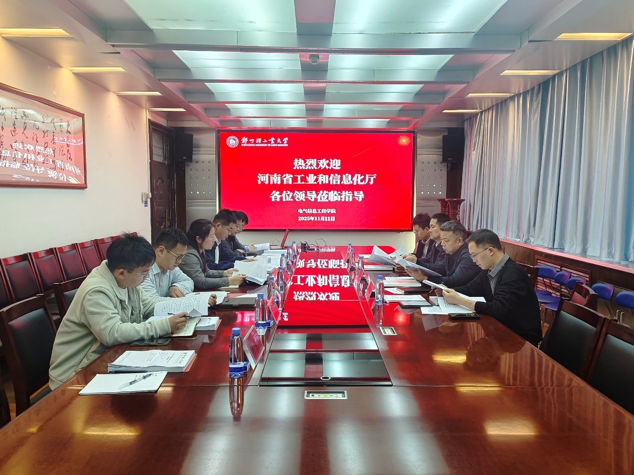2025年11月11日,河南省工业和信息化厅装备工业处周新雨处长一行到访电气信息工程学院,双方围绕“双碳”目标下河南省新型电力装备产业高质量发展开展座谈交流。电气信息工程学院院长和萍,副院长申永鹏等共同参与座谈。