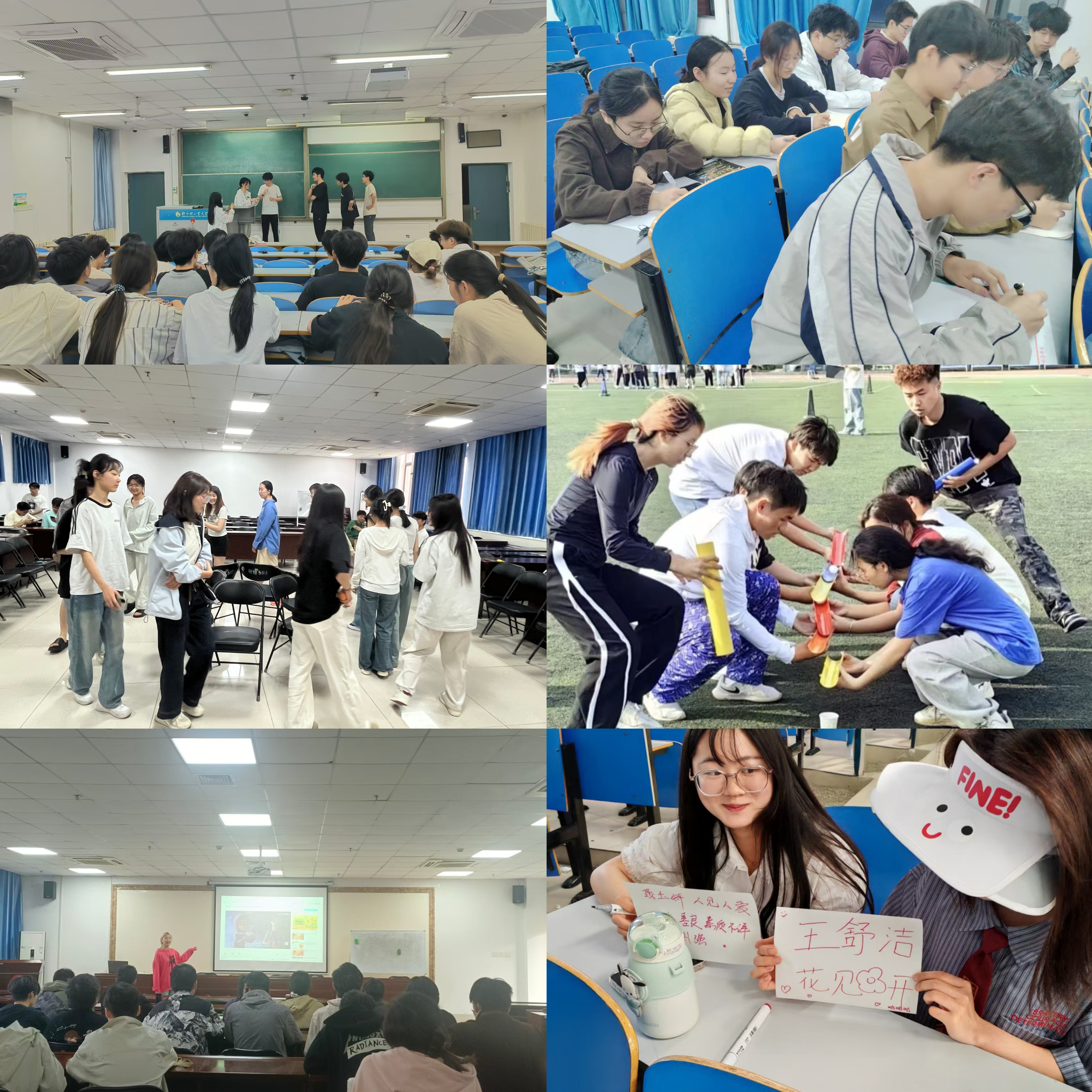 “快乐心动力之心理加油站”以团队合作和快速问答接力环节增强学生联结感;“谁是特殊的那一个”通过“猜拳预热”“神秘身份”等游戏锻炼学生的社交与推理能力;“心语同行 心向阳光”依托“人椅游戏”“情感接力”等活动促进新生信任与默契;“心向暖阳:大学生心理素质提升之旅”聚焦自我认知与情绪管理,通过“优点大挖掘”“放松充电站”等环节提升学生心理韧性;“同心灵,共奔跑”则以听音乐猜歌名,接力画画的方式提高团队协作能力。这些活动均注重低门槛、高互动,在轻松氛围中帮助学生缓解压力,增强班级凝聚力。