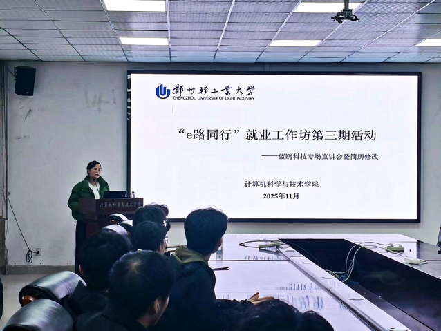 11月25日下午,计算机科学与技术学院在计算机楼213室成功举办“e路同行”就业工作坊第三期活动。本次活动特邀2008级校友、河南蓝鸥科技有限公司总经理翟龙伟主讲,围绕简历撰写与优化开展专题辅导。