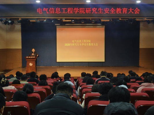 为进一步加强我院研究生安全防范意识,筑牢冬季校园安全防线,12月5日上午,电气信息工程学院在教一楼107演讲厅召开硕士研究生安全教育大会。学院党委副书记刘振卫、研工办主任芦佳出席会议并作专题安全教育,全体研究生参加本次会议。