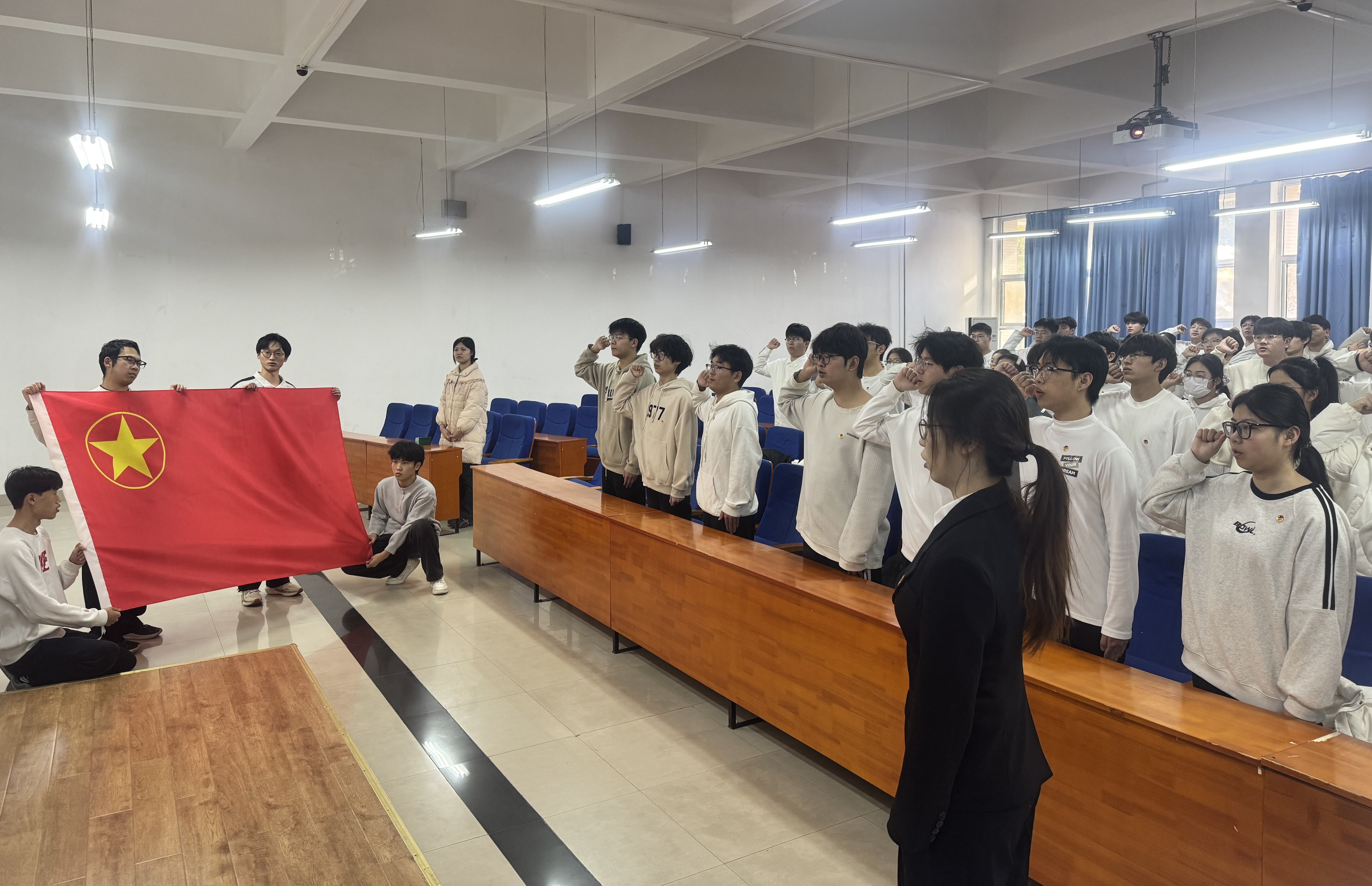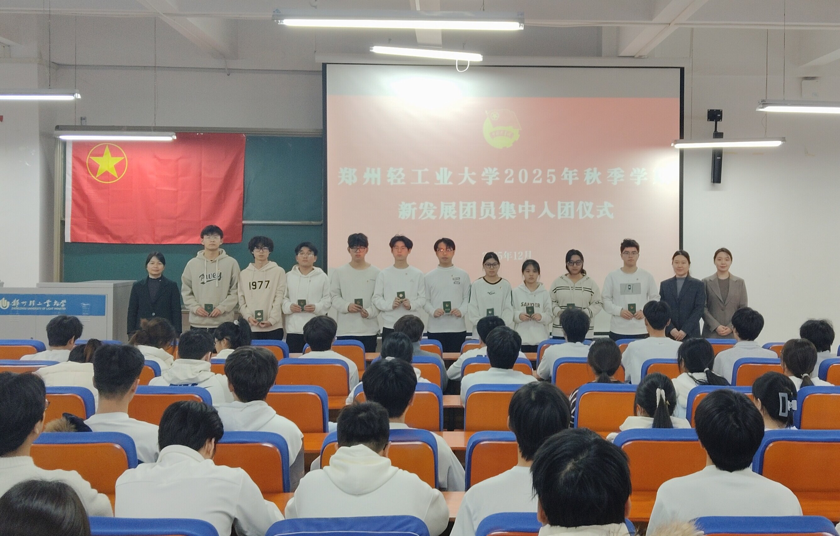为加强共青团队伍建设,增强团员青年的光荣感、责任感和使命感,12月25日下午,我校在科学校区计算机系楼217和东风校区教二楼130同步举行2025年秋季学期新发展团员入团仪式。学校团干部代表、教师代表、老团员代表及2025年下半年新发展团员代表200余人共同参加了此次活动。