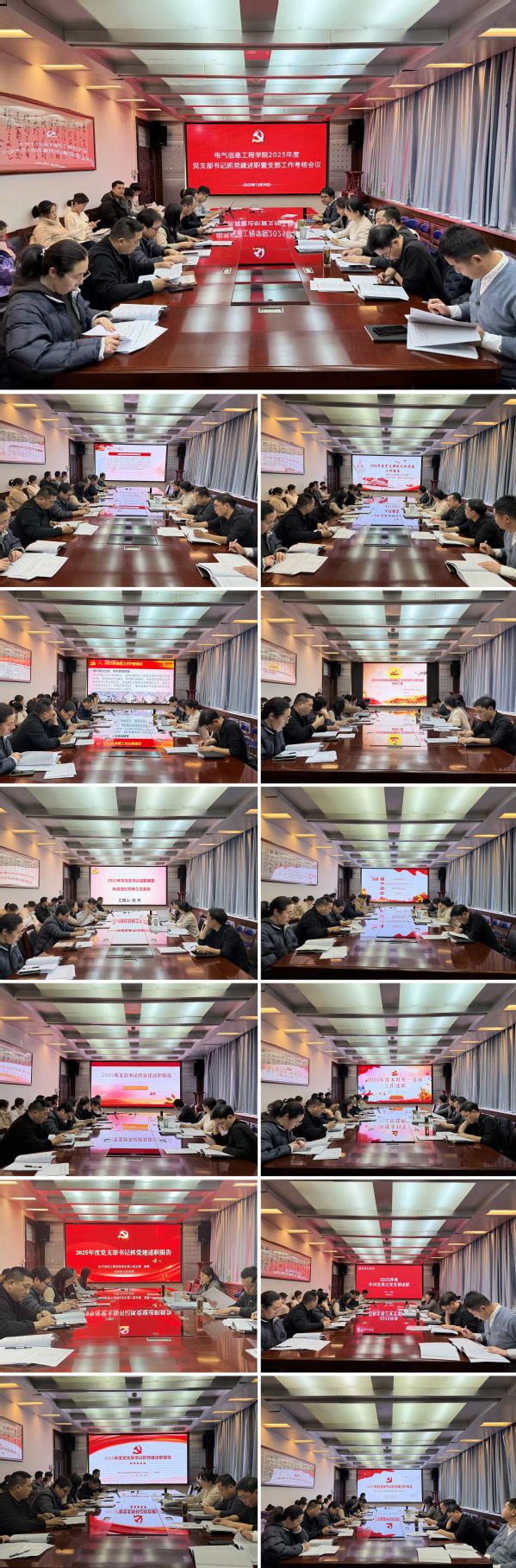 12月30日下午,电气信息工程学院党委在西二楼301会议室组织召开2025年度党支部书记抓基层党建述职评议考核会。电气信息工程学院党委委员、各党支部书记、党员代表参加会议。会议由党委书记张辉主持。