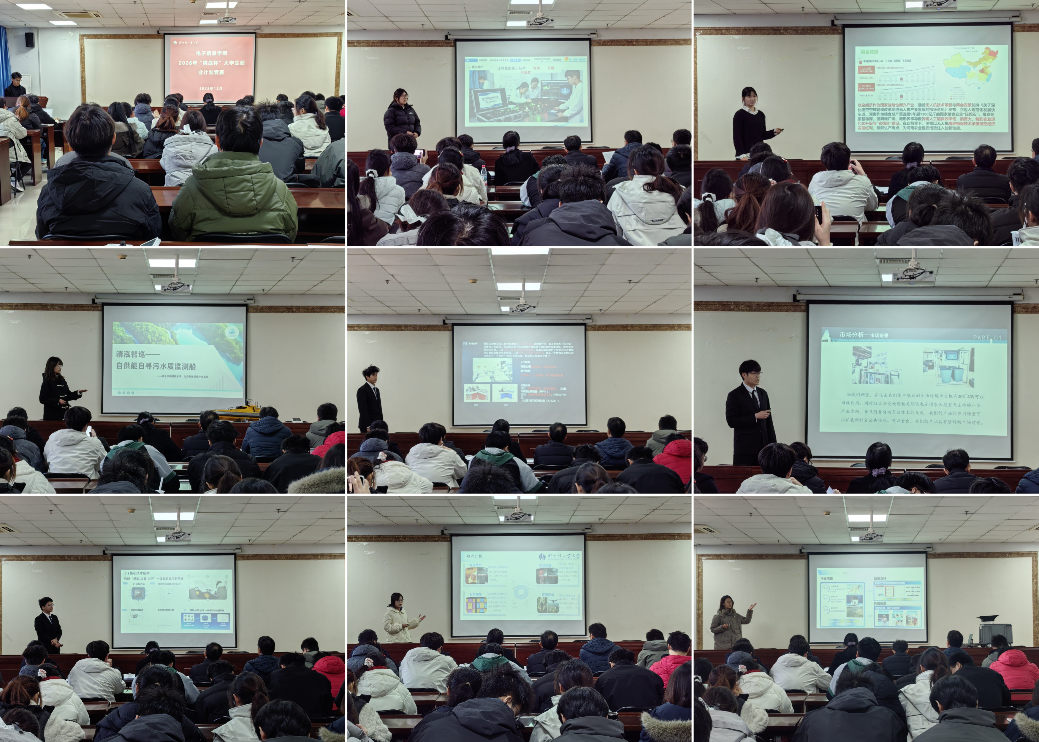 为了提高学生科技创新意识,增强创新实践能力。12月30日下午,电子信息学院在四教503会议室成功举办2026年“挑战杯”大学生创业计划竞赛学院选拔赛。学院党委副书记李玲、副院长刘德伟及专业教师代表出席大赛并担任评委。