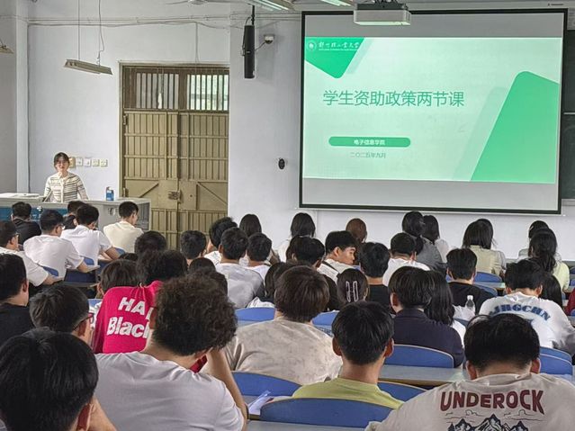 近日,电子信息学院开展国家资助政策“两节课”宣讲暨诚信教育会,学院资助工作专职教师杨若雨及全体2025级新生参加了活动。