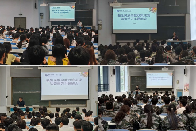 9月10日,计算机科学与技术学院在东风校区教三楼分批开展“民族宗教政策法规知识学习”主题班会。班会由各班级辅导员主持召开,学院2025级全体新生参加。