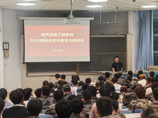 为帮助新生尽快适应大学生活,增强安全防范意识和提高自我保护能力,9月15日,电气信息工程学院举办了2025级新生安全教育主题班会,学院新生辅导员和全体新生参加本次班会。
