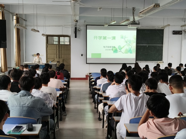 为引导2025级新生快速适应大学生活,明确未来方向,树立远大理想,近日,电子信息学院在东风校区开展了以“筑梦新征程,启航新未来”为主题的新生第一课主题班会。本次班会由新生辅导员杨若雨老师主讲,全体2025级本科新生参与。