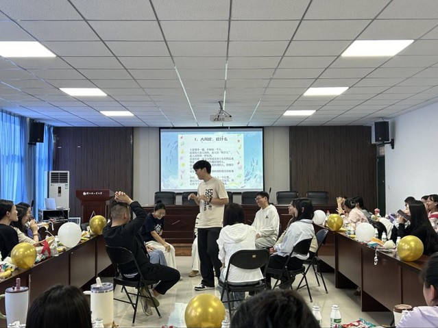 2025级新生以宿舍为单位带来了歌曲演唱、马理论四句半、改编小品等节目活跃了现场气氛,游戏环节的气氛活跃,新老生积极参与,随机组队、默契配合。互相介绍和问题解答环节,大家针对考博升学、考公就业、论文方向选定、导师选择、奖学金评定等学习工作中遇到的问题进行了交流讨论,不仅带来了欢笑,也加强了新老生间的交流。