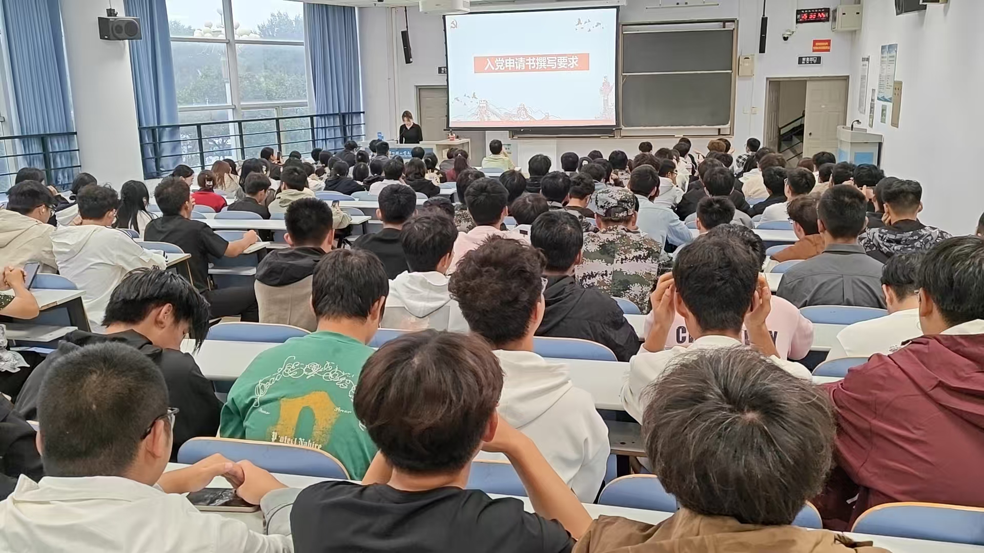 会上,学院党委组织员崔昊老师以九三阅兵为切入点,从党的发展历程、性质宗旨、入党条件与流程等方面展开讲解,生动诠释“党员”二字的责任与担当。学生党员代表分享了自己从递交入党申请书到成长为预备党员的经历,用身边故事解答新生“为什么入党、入党做什么”的疑惑,拉近理想与现实的距离。此次入党启蒙教育不仅帮助学院全体2025级新生系统了解党的基本知识,更激发了向党组织靠拢的热情。新生同学们纷纷表示,将以此次教育为起点,在今后的学习生活中坚定理想信念,以实际行动争取早日加入中国共产党,为国家发展与民族复兴贡献青春力量。