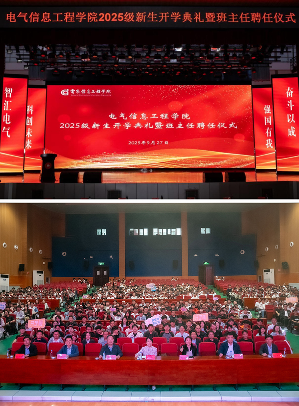 9月27日下午,电气信息工程学院2025级开学典礼暨班主任聘任仪式在东风校区大礼堂隆重举行。2025级本硕博新生怀着激动喜悦的心情,筑梦新征程、奋进再启航。学院领导班子、系主任、班主任代表、辅导员参加活动。典礼由党委副书记刘振卫主持。